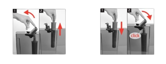 - Ouvrez le porte-filtre et retirez l’ancienne cartouche filtrante;
