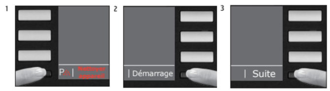 L’opération s’interrompt, le message « insérez une pastille de nettoyage » s’affiche.