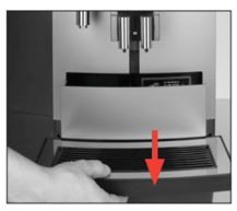- Videz le bac d'égouttage et le récipient à marc de café, puis remettez-les en place.