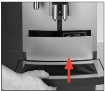 - Videz le bac d'égouttage et le récipient à marc de café, puis remettez-les en place;